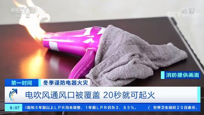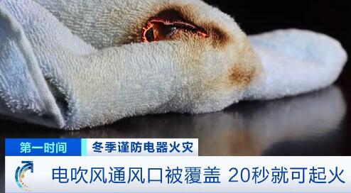 原标题:[第一时间]冬季谨防电器火灾 电吹风通风口被覆盖 20秒就可起火