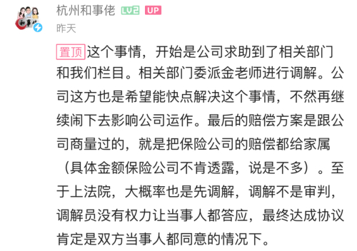 在节目中,公司负责人张总透露,在小蒋出事后,其父母多次暗示公司赔钱,还提出让同事捐款,这一提议被公司拒绝。但出于人道主义,公司给了6万元抚恤金。