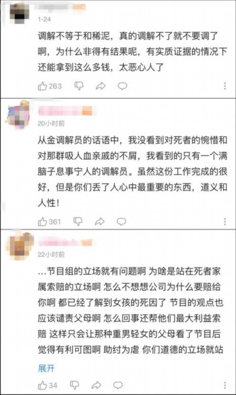米粑书坊http://www.succedu.com▼▲▼▲▼▲▼▲▼●●●●●●●▼▲▼▲▼▲ 1月24日,《杭州和事佬》节目最新一期播出后,一位24岁女生的不幸遭遇和其原生家庭的冷漠令不少网友直呼,简直就是“现实版樊胜美”,而其父母在女儿意外遇难后要求公司赔偿41万,竟是为了给儿子买房攒首付的说辞,更是引发了网友的集体谴责。