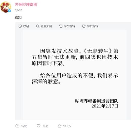 有网友指出,此事可能与B站被指充斥大量侮辱女性内容有关,最近的导火索是日本动漫《无职转生》。不过在2月7日,B站官方账号称,因为技术故障,第五集无法更新,前四集也暂时下架。