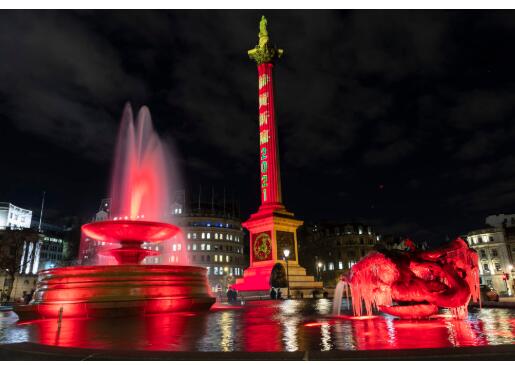 持续的新冠疫情,使欧洲多国庆祝中国春节的活动受到了影响,但却并未阻挡人们的热情。近日,不少欧洲国家将中国春节庆祝活动转到线上,喜庆的气氛和浓浓的年味丝毫没有减少。△2月11日,伦敦特拉法加广场举行牛年新春灯光秀“中国红”为各地增添节日氛围新冠疫情封锁下,伦敦没有了往年的繁忙和喧嚣。一缕“中国红”却带来了节日的喜庆。伦敦的中国春节庆祝活动是亚洲以外最大的中国新年庆典,此前已连续19年在特拉法加广场举行。今年庆典活动并没有取消,而是转为线上举办。英国民众在&ld
