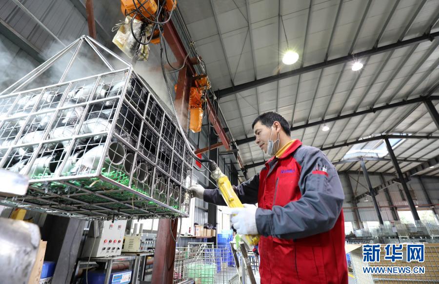 2月18日,湖南省资兴市经济开发区一家厨卫管道生产企业的工人在清洗产品。