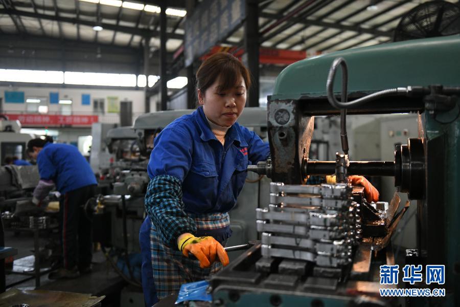 2月18日,在四川遂宁经济开发区,一家机械设备生产企业的工人在车间内忙碌。