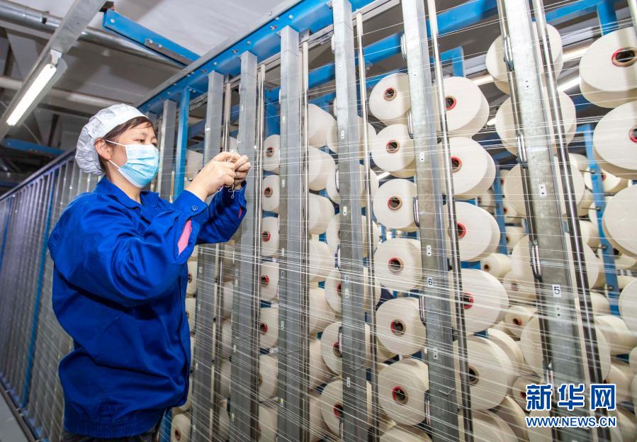 2月18日,在江苏省海安市一家纺织公司内,工人在车间内忙碌。
