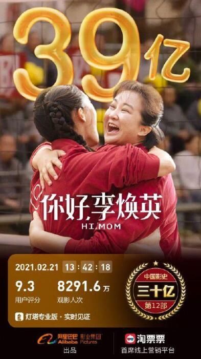 而另一部电影《你好,李焕英》成绩也很不错!截至2月21日13时42分,上映第十天的《你好,李焕英》总票房超过39亿元。
