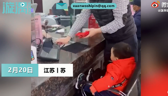 张先生带着孩子来到银行,把孩子从小收到的所有压岁钱红包都给孩子存了起来,准备等他长大的时候再给他。