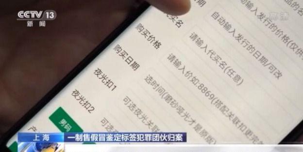 上海市公安局虹口分局经侦支队情报技术室主任 偰宜君: 通过扫描鉴定证书里面的二维码,就会跳出需要填写产品名称、发行价格、发行(日期)的页面,售假人在之前就会先把这些信息填好。买到假冒商品和假“四件套”包装商品的消费者再扫码时,就会跳出之前填好的东西。