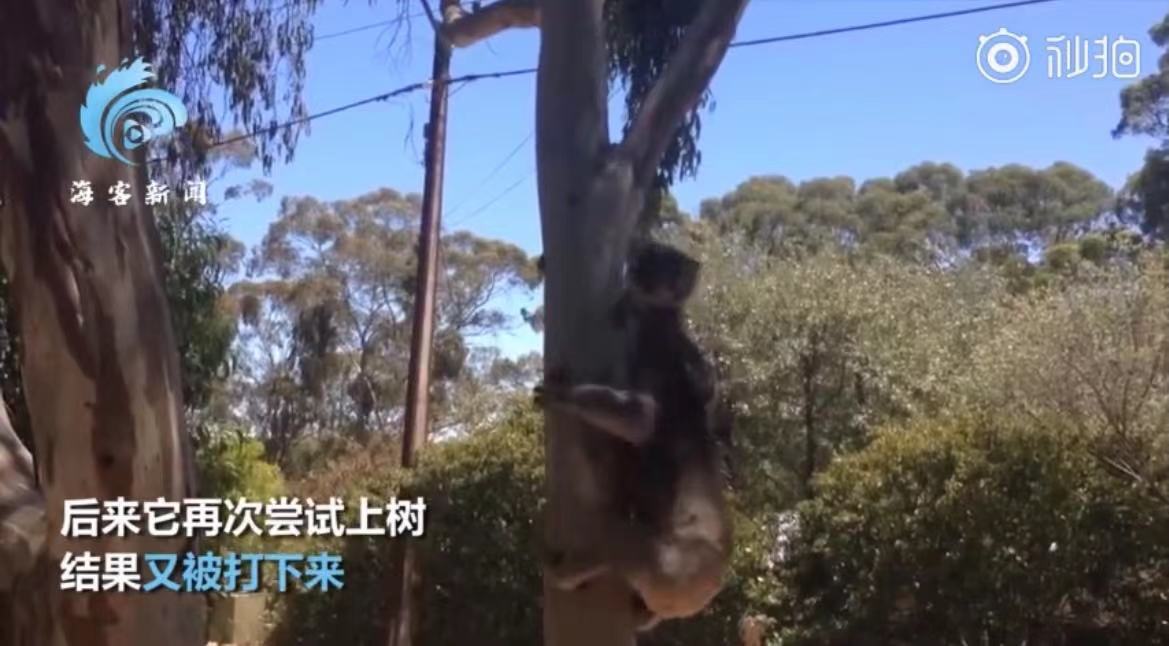 视频中的这只考拉两次试图与对方争夺一棵树失败,被彻底打下后,它蹲在树下狂嚎,一直哭喊到声嘶力竭,画面魔性。