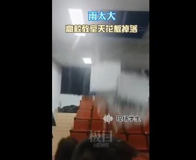 高校上课时教室天花板掉落学生打伞撤离 校方回应暴雨冲塌教室天花板