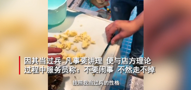 在2021年4月9日,海南省三亚市,李先生反映,在景区某餐厅吃饭的时候,点了澳龙和海胆蒸蛋,但海胆蒸蛋里面只有蛋,澳龙也被调包了,因为自己当过兵,凡事要讲道理,便想与店方争论,过程中,一女服务员好心告诉其不要闹事,不然走不掉……
