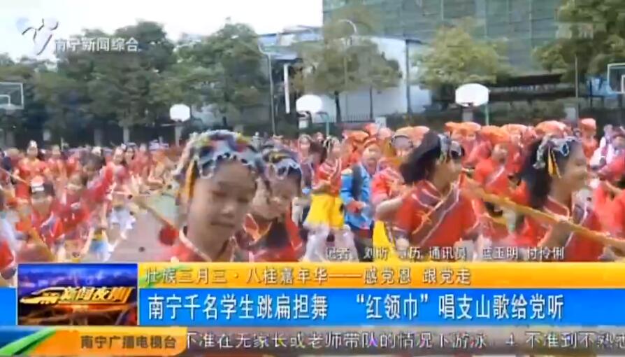 南宁千名学生跳扁担舞 “红领巾”唱支山歌给党听原标题:[新闻夜班]南宁千名学生跳扁担舞 “红领巾”唱支山歌给党听
