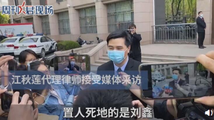4月15上午9点,江歌妈妈诉刘鑫生命权纠纷案在山东省青岛市城阳区人民法院开庭审理。@中国新闻周刊 在现场了解到,早上8时许,江秋莲的代理律师黄乐平出现在法院门口。他告诉媒体,“动刀杀人的是陈世峰,但置江歌于死地的是刘鑫”。黄乐平此前表示,本次起诉的主要理由为:被告刘鑫虽然没有直接参与陈世峰对江歌的故意杀人行为,但刘鑫对江歌死亡存在无可推卸的重大过错。视频截图原标题:江歌母亲起诉刘鑫案开庭:律师称刘鑫过错致江歌遇害