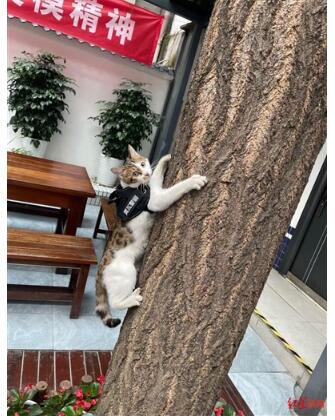 警犬大家见得多了,警猫你见过吗?毛色白、黄、黑相间,身穿一件黑色的小马甲,马甲一边写着“我很乖不咬人”,一边写着“黄瓦警猫”——这就是成都市公安局青羊分局黄瓦街派出所的大明星警猫“瓦宝”。