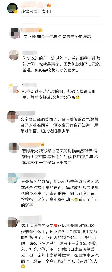 作者在文中回顾了自己如何一路走出小山坳、和命运抗争的经历,打动了无数网友: