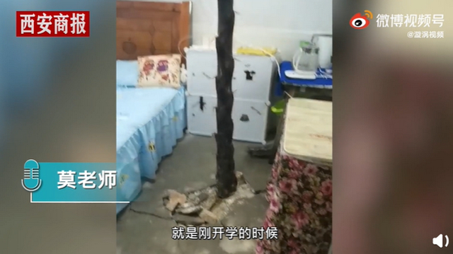 近日,湖南益阳。莫老师宿舍的水泥地上,长出了一棵竹笋,足有4米高。莫老师表示,刚开始地上出现裂缝,后来竹笋开始冒尖,于是把水泥搬开看着它成长,觉得是很有意思的一件事。