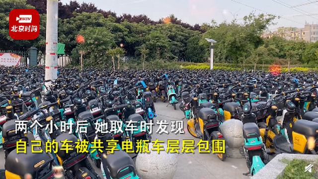 停车2小时被共享电动车层层包围 当事女生:崩溃又尴尬!