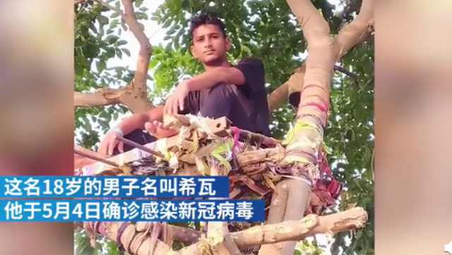 5月18日,印度媒体报道称印度特伦甘纳邦一名18岁男子在新冠病毒检测结果呈阳性后,因无法找到合适的隔离设施,不得不在家旁边的一棵树上隔离了11天。