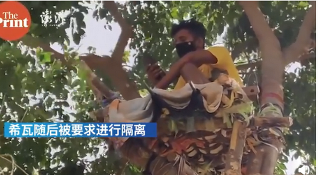 5月18日,印度媒体报道称印度特伦甘纳邦一名18岁男子在新冠病毒检测结果呈阳性后,因无法找到合适的隔离设施,不得不在家旁边的一棵树上隔离了11天。后来男子被转移至一处距家7公里的隔离中心,随后他又进行了新冠病毒检测,结果呈阴性。据印度媒体报道,希瓦并非该村庄唯一一个需要自己寻找隔离设施的新冠感染者。原标题:印度一男子在树上隔离11天