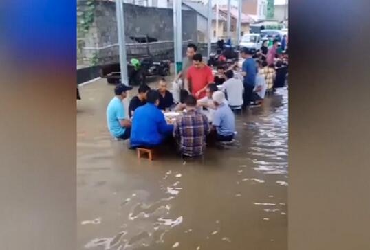 原标题:水淹屁股了宾客仍淡定吃酒席 网友:真流水席
