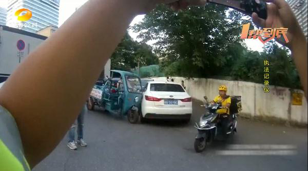 原来是她驾驶的电动车,剐蹭了一辆小汽车。