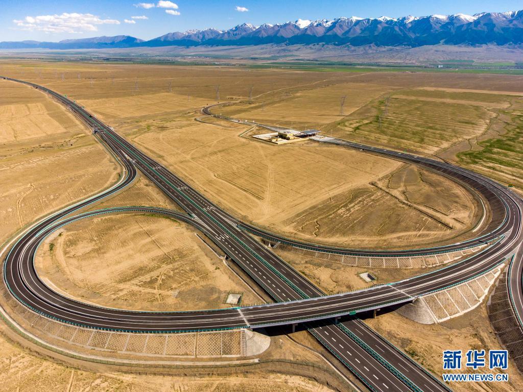 这是在新疆巴里坤哈萨克自治县拍摄的京新高速公路红山立交桥(6月29日摄,无人机照片)。新华社记者 胡虎虎 摄