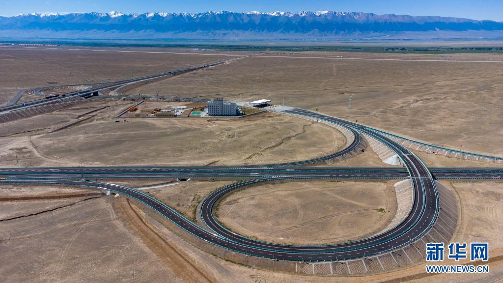这是在新疆巴里坤哈萨克自治县拍摄的京新高速公路上的一处出入口(6月29日摄,无人机照片)。新华社记者 胡虎虎 摄