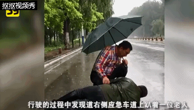 感动!演绎“最美雨景”,夫妻撑伞守护摔倒无法起身的老人