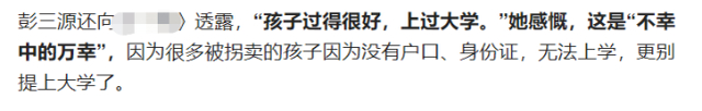 彭三源称郭振过得很好,上过了大学,这也是不幸中的万幸。毕竟不少被拐卖的孩子连户口都没有,更别提上大学了。自己从2011年认识了郭刚堂,这十年时间里自己一直跟对方保持联系,会询问他的近况,一直关切着这件事情。