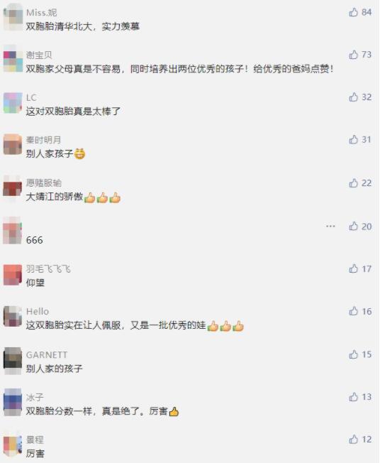 消息一出,众网友纷纷给这对学霸双胞胎兄弟点赞并送上祝福!
