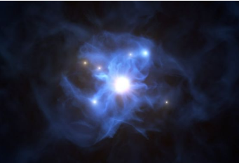 新的观测显示,在宇宙的早期历史中,六个星系被困在一个超大质量黑洞周围的轨道上。
