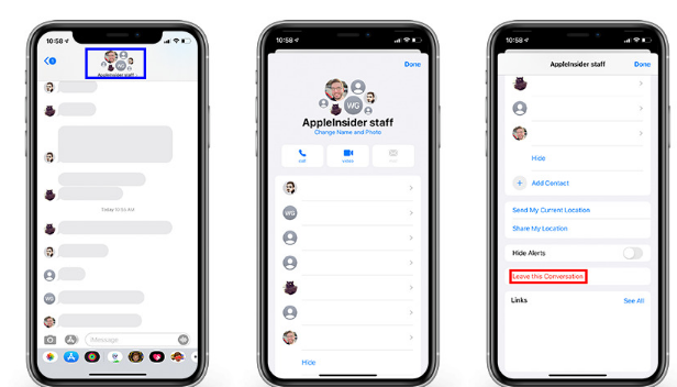 当然,这仅在群聊中的每个参与者都使用iMessage的情况下才有效。如果甚至有一个成员(例如Android用户)使用MMS / SMS,您将无法退出该组。