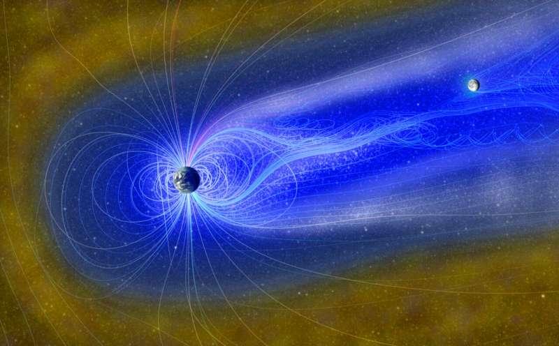 在阿波罗时代之前,由于极端温度和太空环境的恶劣性,月球被认为是沙漠的干燥地。此后,许多研究发现了月球水:阴影极地环形山中的冰,火山岩中约束的水以及月球土壤中出乎意料的生锈铁沉积物。尽管有这些发现,但仍没有真正证实月球表面水的范围或来源。普遍的理论是,带正电荷的氢离子推进由太阳风轰击月球表面和自发地反应,使水(如羟基(OH-)和分子(H2O))。但是,《天体物理学杂志快报》上发表的一项新的跨国研究表明,太阳风可能不是形成水离子的唯一来源。研究人员表明,来自地球的粒子也可以将水注入月球,这意味着其他行星也可以