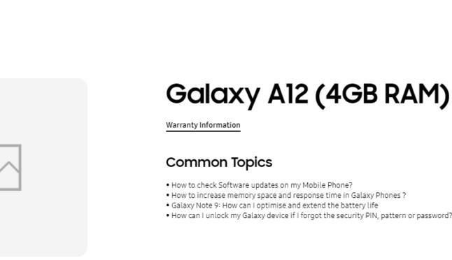 三星Galaxy A12支持页面出现