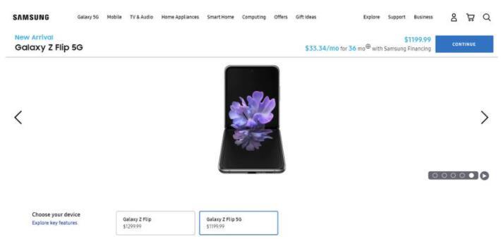 三星意外地决定降低其Galaxy Z Flip 5G可折叠智能手机的价格。