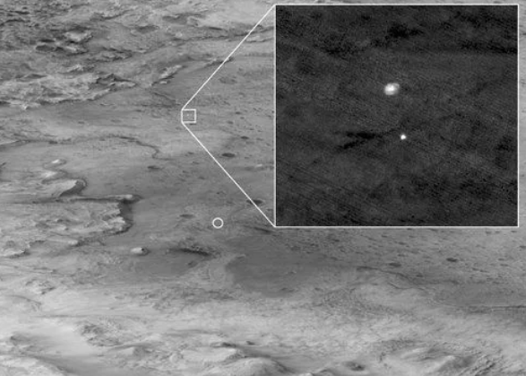 谈论一个独特的卫星图像。火星侦察轨道飞行器是火星轨道飞行的重要NASA卫星,它在周四发现了汽车大小的恒心漫游者在火星大气层跳伞,这是一次成功的登陆过程,尽管该过程非常引人注目。航天局在星期五释放了枪击事件。
