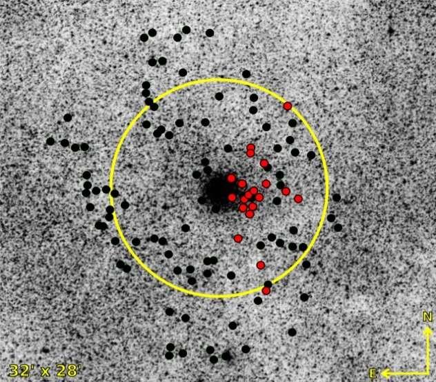来自智利的天文学家使用超大望远镜(VLT)对球状星团NGC 6553中的恒星样本进行了化学分析。该研究的结果发表在3月12日于arXiv预印服务器上的一篇论文中有关该簇的化学成分的更多信息。球状星团(GC)是紧密结合的绕星系运行的恒星的集合。天文学家将其视为自然实验室,可以研究恒星和星系的演化。特别是,球状星团可以帮助研究人员更好地了解早期类型星系的形成历史和演化,因为GC的起源似乎与强烈的恒星形成时期密切相关。 NGC 6553距银河系隆起部分约19,500光年,是一种富含金属的GC。该星团已有130亿