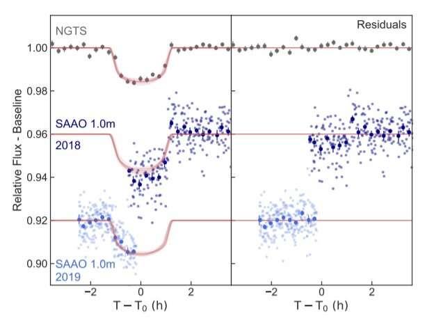 一个国际天文学家团队已经发现了四颗新的“热木星”系外行星,这是下一代过境调查(NGTS)的一部分。新发现的外星世界比木星大至少10%,但比太阳系最大的行星要小。3月18日在arXiv.org上发表的一篇论文中报道了这一发现。 所谓的“热木星”在特征上与太阳系最大的行星相似,其轨道周期不到10天。这些系外行星的表面温度很高,因为它们非常紧密地围绕着它们的母恒星运行。现在,由英国莱斯特大学的Rosanna H. Tilbrook领导的一组天文学家报告发现了这种类