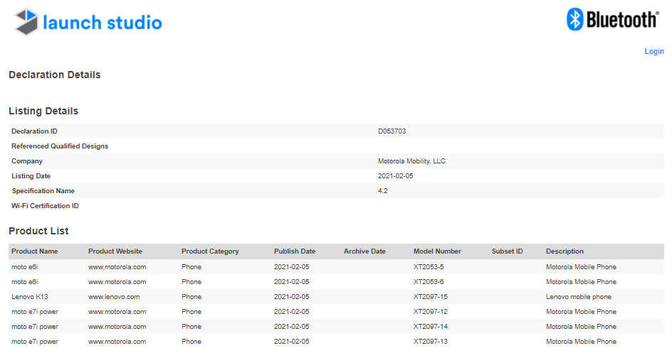 随着Moto E6的发布,第六代Moto E系列于2019年中期首次亮相。摩托罗拉继续发布该系列中的其他三款手机–2019年的Moto E6 Play和Moto E6 Plus和2020年的Moto E6s。但是,尽管摩托罗拉宣布已发布Moto E7,但该系列似乎还没有完成。系列。蓝牙SIG已与另一款摩托罗拉和联想手机一起认证了称为Moto E6i的新型号。 Moto E6i与Lenovo K13 Power和Moto E7i Power一起通过了认证。新的Moto E6手机的型号为XT205