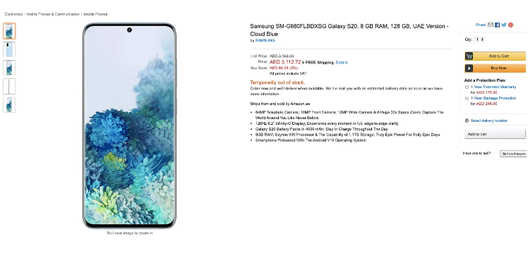 “三星Galaxy S20的完整规格和价格已在亚马逊阿联酋网站上列出,几乎揭示了我们已经知道的一切”
