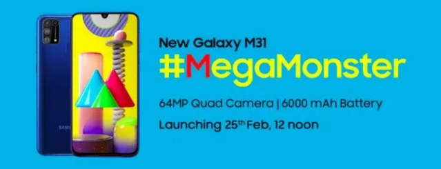 三星Galaxy M31印度发布日期是2月25日 已确认64MP四摄像头和6000mAh电池
