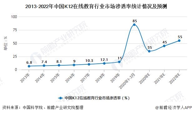 2、疫情之下中国K12在线教育行业渗透率大幅增长