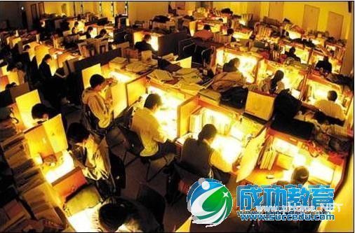 央视《世界著名大学》制片人谢娟曾带摄制组到哈佛大学采访。她告诉本报记者:我们到哈佛大学时,是半夜2时,可让我们惊讶的是,整个校园当时是灯火通明的,那是一个不夜城。餐厅里,图书馆里,教室里还有很多学生在看书。那种强烈的学习气氛一下子就感染了我们。在哈佛,学生的学习是不分白天和黑夜的。那时,我才知道,在美国,在哈佛这样的名校,学生的压力是很大的。在哈佛,到处可以看到睡觉的人,甚至在食堂的长椅上也有人在呼呼大睡。而旁边来来往往就餐的人并不觉得稀奇。因为他们知道这些倒头就睡的人实在是太累了。在哈佛,我们见到最多的就是学生一边啃着面包一边忘我地在看书。