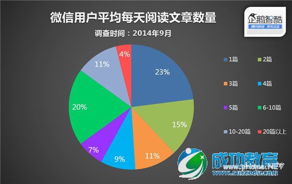 5.86篇是一个平均数,不同的用户每天阅读的文章数存在挺大差异。从图表中可看出,23%的用户平均每天只阅读1篇文章,但也有20%的用户每天阅读6篇到10篇。日均阅读文章数超过3篇的用户占比51%,阅读3篇以下的用户也占到了49%。这意味着重度阅读用户愿意在上面花更多时间看文章,但也有部分用户可能并不会花过多时间在上面阅读。
