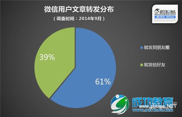 微信用户看到了想要转发的文章,61%转发到了朋友圈,39%的文章转发给好友。有目标性地分享可以看成是微信用户分享文章的特点,虽然转发到朋友圈可以让更多朋友看到,但依旧有接近40%的内容转发给好友。