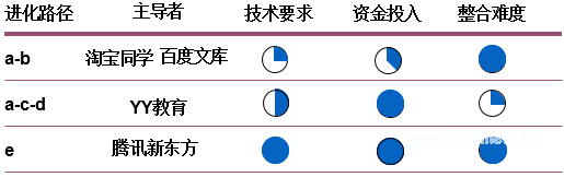 从补缺者向领先者转变的过程中对企业的资源和技术要求最高。产业链上游的投资会在下游的产品和服务服务叠加开发过程中提供更加丰富的管理组合增强了整个系统的自适应能力和可选范围,产业效率会大大提升,选择e路径的企业在技术方面的投资会加快发展速速。从市场的实际反映情况来看腾讯与新东方成立在线教育公司情况看已经取得了资源优势,借助原有数据技术和微信,QQ等社交平台进行社交化影响等优势选择e路径的可能性最大。