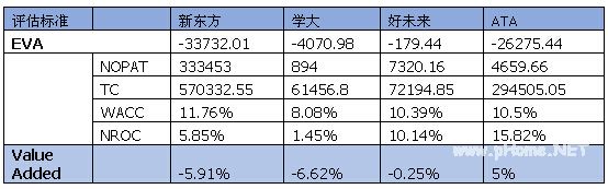 通过结构方程实证了教育服务行业规模扩张的主要动力在于产业外部的宏观经济和技术因素,下面我们会运用EVA理论从财务角度验证教育服务企业价值创造的情况。