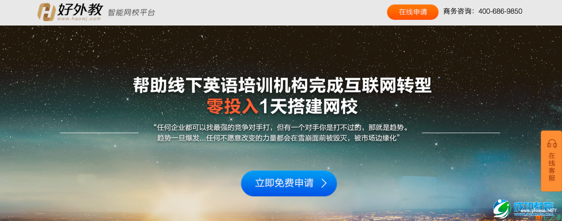 最近,“好外教” 团队正式上线了 2B 服务,推出了智能网校平台,不过与腾讯课堂、100网校这一类平台不同,他们提供的解决方案不仅仅是培训机构的课程,而是整个线下机构互联网化的成长路径。当线下机构选择通过好外教的服务互联网化时,他们可以获得一个,对接好外教的网校研发、师资、教材、技术支持、客服培训等多个服务。