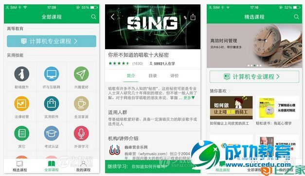 网易云课堂的 App 覆盖 iOS 和 Android 平台。应用可实现学习进度同步,支持课件下载和离线观看,个性化学习提醒等功能。不过其 iPhone 和 iPad 版本是独立版本,相对来说 iPad 版本的更新速度略慢。