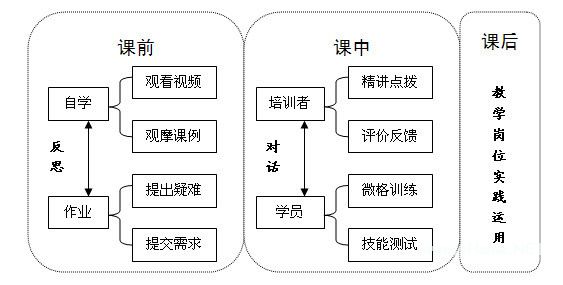 3.课后——岗位实践。同中小学生学习技能一样,教师的教学技能学习也一定要反复练习,要利用教学岗位“在游泳池中学会游泳”。教学技能的实践运用能够得到同伴的批评和专家的指导,可能是许多教师训后的需求。为此,培训者要通过网络研修平台或实地回访等途径开展训后跟踪,参训教师也要利用网络研修平台或校本教研活动积极寻求同伴的帮助和指点。这是“翻转”教师培训与传统教师培训的不同之处之一,是信息化培训环境对教师教学技能提升的积极作为。