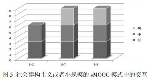 sMOOCs通常围绕教科书或预设的开放教育资源列表、基于期刊文章创建的在线阅读包和视频来设计。因此学生-内容的交互的成本和效果处于中等水平。